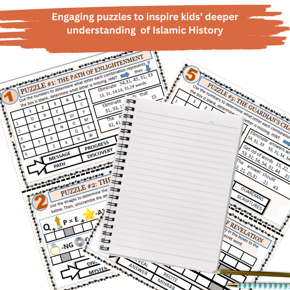 Engage your kids in a meaningful and interactive experience during this blessed month of Ramadan with our Ramadan-themed, Journey to Hira Escape Room Adventure. This immersive and educational printable game created for young explorers aged 8 and above, steps them back in time to witness the remarkable events that took place in the Cave of Hira during the blessed month of Ramadan.
