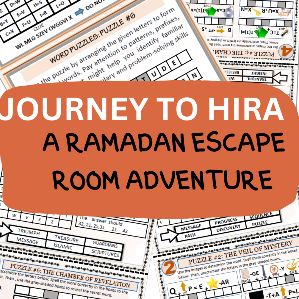 Inspire and empower kids on their journey of faith this Ramadan with a Hira’s Ramadan Escape Room Adventure! It’s an ideal Escape Room Game to deepen their understanding of Islamic history interactively and enjoyably.